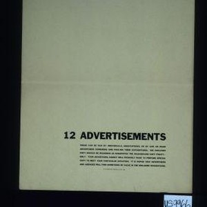 12 advertisements. These can be run by individuals, associations, or by one or more advertisers combining and pooling their expenditures. The enclosed copy should be regarded as suggesting the background copy policy - only. Your advertising agency will probably want to prepare special copy to meet your particular situation. It is hoped that advertisers and agencies will find something of value in the enclosed suggestions