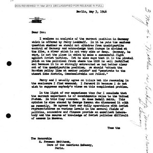 Robert Murphy letter to H. Freeman Matthews, enclosing analysis of the current position in Germany