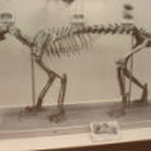 A skeleton of a primitive cat.
