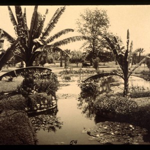 Early view of the lily ponds with palms along the edges. The label that accompanies this photo in the album reads "No. 54 Lily ponds, about 1910."