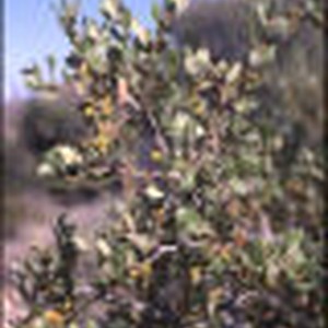 Desert scrub oak in flower in Little San Bernardino Mountains.