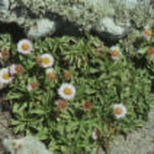 Pink flowers with yellow middles at West Point Cliffs on Santa Cruz Island.