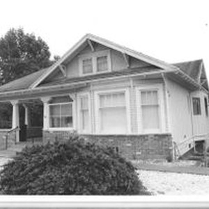 Photo, black and white: Sebastopol house at 7233-35 Bodega Avenue, Hip roof cottage with Queen Anne and Craftsman details in Southwest Sebastopol Bodega Avenue, Block C. House photographed in 1993 by Evelyn McClure for her book "Sebastopol, California : History, Homes and People."