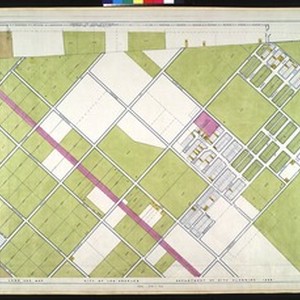 WPA Land use survey map for the City of Los Angeles, book 1 (North Los Angeles District), sheet 6. Includes: [Title page and] legend [for Book] no. I Composite index to Land use map books [for Book 1] Index to Book no. 1. Land use survey - City of Los Angeles. Department of City Planning. These maps were prepared with the assistance of the Works Progress Administration project no. 665-07-G-226 through 1939 to 1940. The land use data contained herein was compiled from a survey made with the assistance of the Civil Works Administration project no. 642, State Emergency Relief Administration project nos. 1-F2-318 and 1-F2-318A and Works Progress Administration project nos. 65-3-4377, 1101-2011 and 465-03-3-106. This survey functioned from Dec. 18, 1933 to May 8, 1939 and covers approximately 460 square miles within the boundary of the City of Los Angeles. It includes 347 colored drawings bound in 10 volumes of which this is no. I. The land use survey was supervised by the Zoning Engineer. The land use maps were supervised by the Illustrative Planning Engineer for the Sponsoring Department.