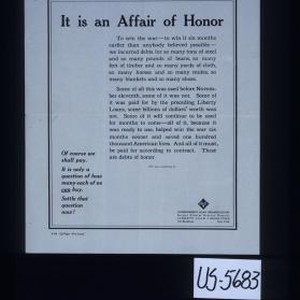 it is an affair of honor to win the war - to win it six months earlier than anybody believed possible - we incurred debts for so many tons of steel and so many pounds of beans, so many feet of timber and so many yards of cloth ... Some of it was paid for by the preceding liberty Loans, some billions of dollars' worth was not. Some of it will continue to be used for months to come - all of it