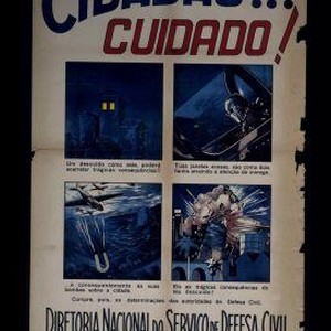 Cidadao ... cuidado! Um descuido como este, podera acarretar tragicas consequencias!! Tuas janelas acesas, sao como dois farois atraindo a atencao do inimigo .... e consequentemente as suas bombas sobre a cidade. Eis as tragicas consequencias do teu descuido! Cumpre, pois, as determinacoes das autoridades de Defesa Civil