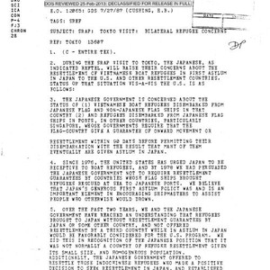 Secretary of State cable to American Embassy in Tokyo re. SRAP: Tokyo visit: Bilateral refugee concerns