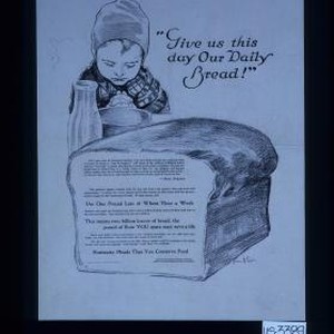 "Give us this day our daily bread!" Oh, I pray that all American mothers who have little tots like me, realizing what it means for them to "just be hungry," ... - Baby Belgium ... Use one pound less of wheat flour a week ... This means two billions loaves of bread, the pound of flour YOU save may save a life ... Humanity pleads that you conserve food