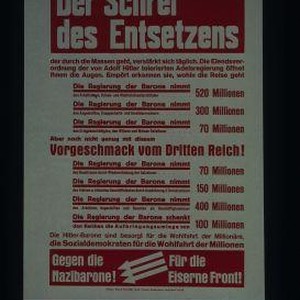 Der Schrei des Entsetzens der durch die Massen geht, verstarkt sich taglich. Die Elendsverordnung der von Adolf Hitler tollerierten Adelsregierung offnet ihnen Augen. Emport erkennen Sie, wohin die Reise geht. Die Regierung der Barone nimmt 520 Millionen den Arbeitslosen, Kriesen- und Wohlfahrtsunterstutzten ... Gegen die Nazibarone! Fur die Eiserne Front!
