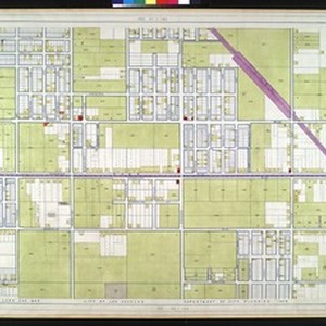 WPA Land use survey map for the City of Los Angeles, book 5 (Santa Monica Mountains from Girard to Van Nuys District), sheet 9. Includes: [Title page and] legend [for Book] no. V Composite index to Land use map books [for Book 5] Index to Book no. 5. Land use survey - City of Los Angeles. Department of City Planning. These maps were prepared with the assistance of the Works Progress Administration project no. 665-07-G-226 through 1939 to 1940. The land use data contained herein was compiled from a survey made with the assistance of the Civil Works Administration project no. 642, State Emergency Relief Administration project nos. 1-F2-318 and 1-F2-318A and Works Progress Administration project nos. 65-3-4377, 1101-2011 and 465-03-3-106. This survey functioned from Dec. 18, 1933 to May 8, 1939 and covers approximately 460 square miles within the boundary of the City of Los Angeles. It includes 347 colored drawings bound in 10 volumes of which this is no. V. The land use survey was supervised by the Zoning Engineer. The land use maps were supervised by the Illustrative Planning Engineer for the Sponsoring Department.