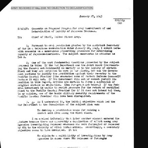 J. L. DeWitt memo regarding comments on proposed program for Army recruitment of and determination of loyalty of Japanese evacuees, with attachments