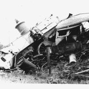 Photo--black and white: 1910 P&SR train wreck of Engine No 20.