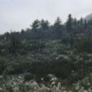 Green ground brush and blooming white flowers cover hillside of Cow Canyon Saddle 3 1/2 years after a fire.