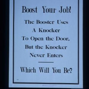Boost your job! The booster uses a knocker to open the door, but the knocker never enters. Which will you be?