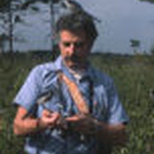 Professor Oglesby holds one Florida scrub jay while another perches on his head