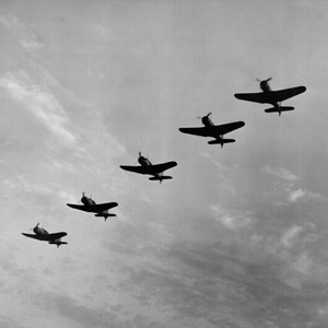 Douglas SBD-5 Dauntless bomber formation NAS Glynco 11Aug44 - Title:Array - Image from the Theodore Bolduc collection. Ted enlisted in the Navy at the start of World War II and served as an Aviation Photographer, assigned primarily to "Lighter Than Air" (blimp) squadrons in Georgia and Florida. He married Navy nurse Bernice Fournier, from Waterville, Maine, in 1946.------Please Tag these images so that the information can be permanently stored with the digital file.---Repository: San Diego Air and Space Museum