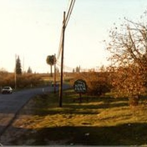 Photo--color: The Hallberg Apple Farm roadside stand sign along Gravenstein Highway North (Highway 116) 1979.