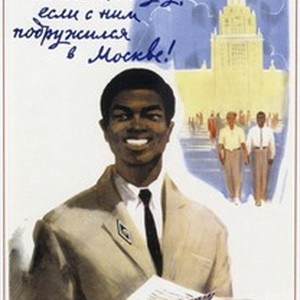 Soviet socail poster. Caption reads, "Druga ia nikogda ne zabudu, esli s nim podruzhilsia v Moskve! / Друга я никогда не забуду, если с ним подружился в Москве!", meaning, "I will never forget a friend if I befriended him in Moscow!". [Description English/roman)]