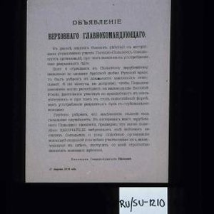 Image / Ob'iavlenie Verkhovnago Glavnokomanduiushchago. V raione nashikh boevykh deistvii s avstriitsami ustanovleno uchastie …