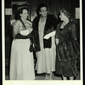 Photograph of Dr. Arenia C. Mallory and 2 unidentified women at a social function, [s.d.]. "Arichard Arless Associates, commercial photographers, 644 Lagauchetiere West - UN. 6-2804, Montreal, Canada, to re-order quote no. 9300 43" -- back. [Description English/roman)]