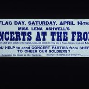 Flag Day, Saturday, April 14. Miss Lena Ashwell's concerts at the front ... Will you help send concert parties from Sheffield to cheer our soldiers