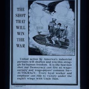 The shot that will win the war. United action by America's industrial partners will shorten and win this struggle for human freedom. It is the heaviest shot our democracy can fire at wage-earners and wage-payers' common foe - autocracy. Every loyal worker and employer can ride to victory under the eagle's wings with Uncle Sam
