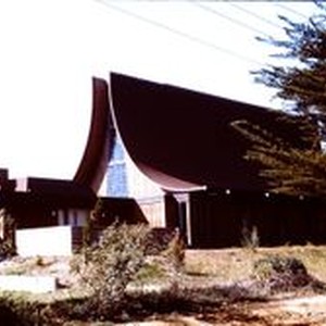 Slide, color transparency: The Community Church of Sebastopol UCC located at 1000 Highway 116 North in Sebastopol, 1970.