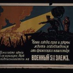 Nashi goroda, sela i khramy zhdut osvobozhdeniia ot vrazheskago nashestviia. Pomogaite armii v eia velikom dele i podpisyvaites' na voennyi 5 1/2 % zaem