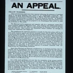 National Advisory Committee on War Output. An Appeal. Fellow workmen: Cases of restricted output have been reported indicating the existence of practices which in this great national crisis cannot be too emphatically condemned
