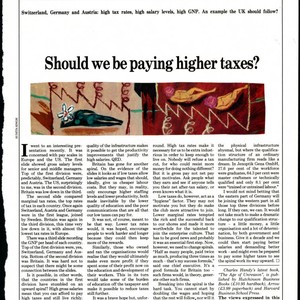 Article by Charles Handy assessing corporate revenue and growth, and whether the UK should follow the example of Switzerland, Germany, and Austria, 1991; Charles Handy Papers; Box 20, Folder 4; 1 page