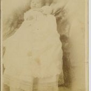 Photo--black and white, cabinet card: Photo of Mary Whiteside's baby. Daughter of Mary (Crow) Whiteside and husband Whiteside. Mary's grandparents were Mitchell Gilliam and Henrietta (Taylor) Gilliam, early settlers of Green Valley (Graton). Gilliam family--Gilliam, Crow and Whiteside branches.