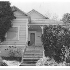 Photo, black and white: Sebastopol house at 290 Jesse Street a Queen Anne cottage built in 1905 in the Brittian Addition. House photographed in 1993 by Evelyn McClure for her book "Sebastopol, California : History, Homes and People."