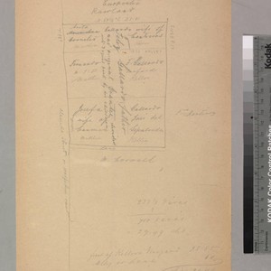 Within folded sheet, "Keller's Rising Sun Vineyard..." two sketches: one showing Feliz Gallardo & other parcel owners along Alameda street, one sketch of Rafael Gallardo parcel along Los Angeles river, showing distances in varas, other parcel owners; two sketches within "M. Keller... to Ch. Sarraute [?]..." pgs. 4-5 showing parcels & owners along Aliso St. below Alameda, with distances. Title supplied by cataloger.