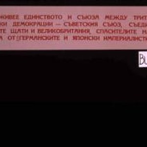 Da zhivee edinstvo i suiuza mezhdu trite veliki demokratsii - Suvetskiia Suiuz, Suedinenite Shtati i Velikobritaniia, spasitelite na sveta ot germanskite i iaponski imperialisti