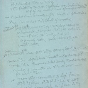 Text / Handwritten biographical note on Leon Peters from Rotary Club