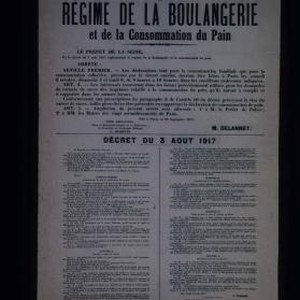 Reglementation du regime de la boulangerie et de la consommation du pain. ... Decret du 3 aout 1917: ... Consommation du pain et etablissement des carnets. ... Controle et usage des carnets. ... Consommation de la population flottante. ... Vente du pain et vente de la farine au detail. ... Dispositions speciales et sanctions