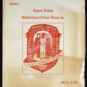 Souvenir program book for the National Council of Negro Women regional meeting, region IV, Birmingham, Alabama, 1952 April 25-27. [Description English/roman)]
