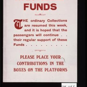 War relief funds. The ordinary collections are resumed this week, and it is hoped that the passengers will continue their regular support of these funds. Please place your contributions in the boxes on the platforms