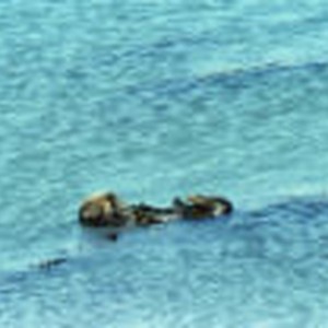 A sea otter sleeping in the water near the entrance to the bay.
