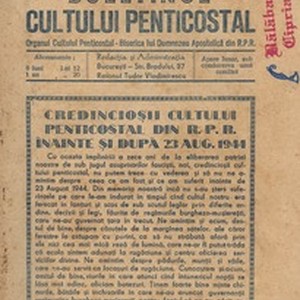 Buletinul Cultului Penticostal este publicația periodica oficiala a Bisericii Penticostale din Romania in perioada comunista. Apare intre anii 1953-1989. [Description (original non-English/roman language/script)] The Magazine of the Pentecostal Church is the periodical, official publication of the Romanian Pentecostal Church during communist times. It has been published between 1953 and 1989. [Description English/roman)]