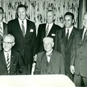 Luncheon for Valley Federal Savings Directors, 5 men standing and 2 sitting including William P. Whitsett.