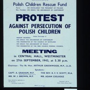 Polish Children Rescue Fund ... Protest against persecution of Polish children ... Meeting in Central Hall, Westminster on 27th September, 1943 ... Collection in aid of Polish Children Rescue Fund