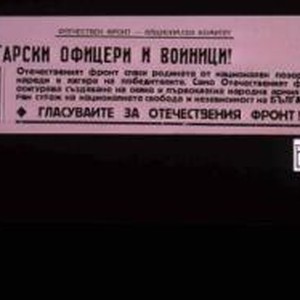 Bulgarski ofitseri i Voinitsi! ... osiguriava suzdavane na sila i pervoklasna narodna armiia ... Glasuvaite za Otechestveniia Front!