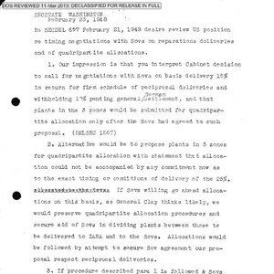 Image / Douglas cable regarding US position regarding timing negotiations with Soviets on reparations …