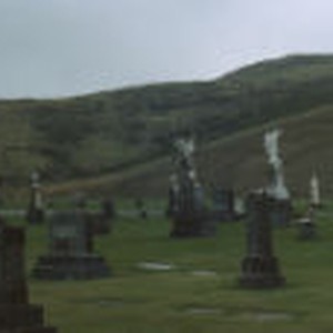 Green rolling hillls serve as a backdrop to the Cayucos cemetery.