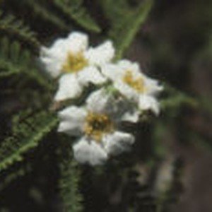 Close-up of white flowers with yellow stamen surrounded by green leaves with ruffled edges.