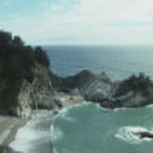 Panoramic view of secluded cove and McWay Falls at Big Sur.