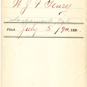 There are no known copyright restrictions associated with these digital images. We encourage the use of these images for personal, study, and educational purposes. Please credit “Courtesy of California State Archives.” The California State Archives and the Friends of California Archives cannot be responsible for any use of these images, or any liability resulting from their use. The Archives is interested in learning about any possible copyright restrictions and will gladly remove any image that is in violation.