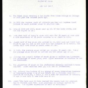 Mimeograph typed document entitled "Status of women: did you know?" listing ten statistics about women. Intended for a Church of God in Christ workshop? [Description English/roman)]