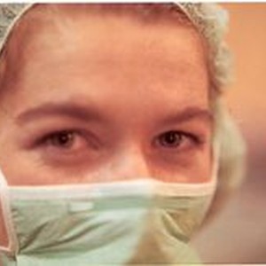Photo -color: Nurse Nancy Phillips in surgery scrubs. Photo from Palm Drive Hospital Scrapbooks--1970.